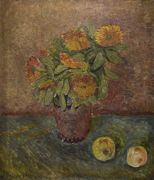 na odwrocie kompozycja malarska - Martwa natura z warzywami - w technice olejnej.