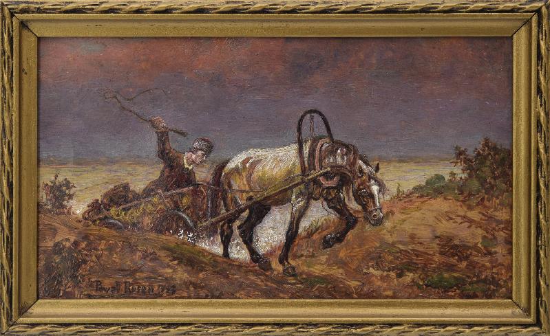 Koń w zaprzęgu i woźnica, 1923