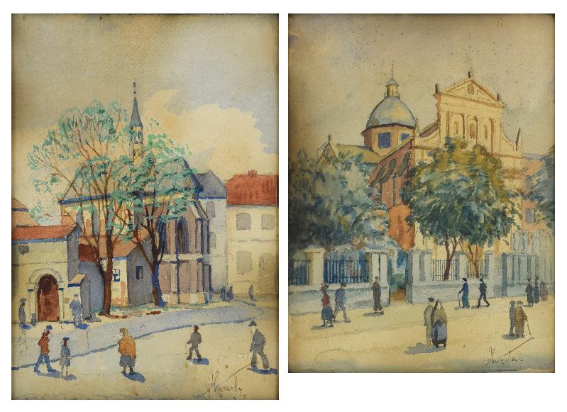 akwarela na podrysowaniu ołówkiem, papier; 26 x 20 cm (w świetle oprawy);